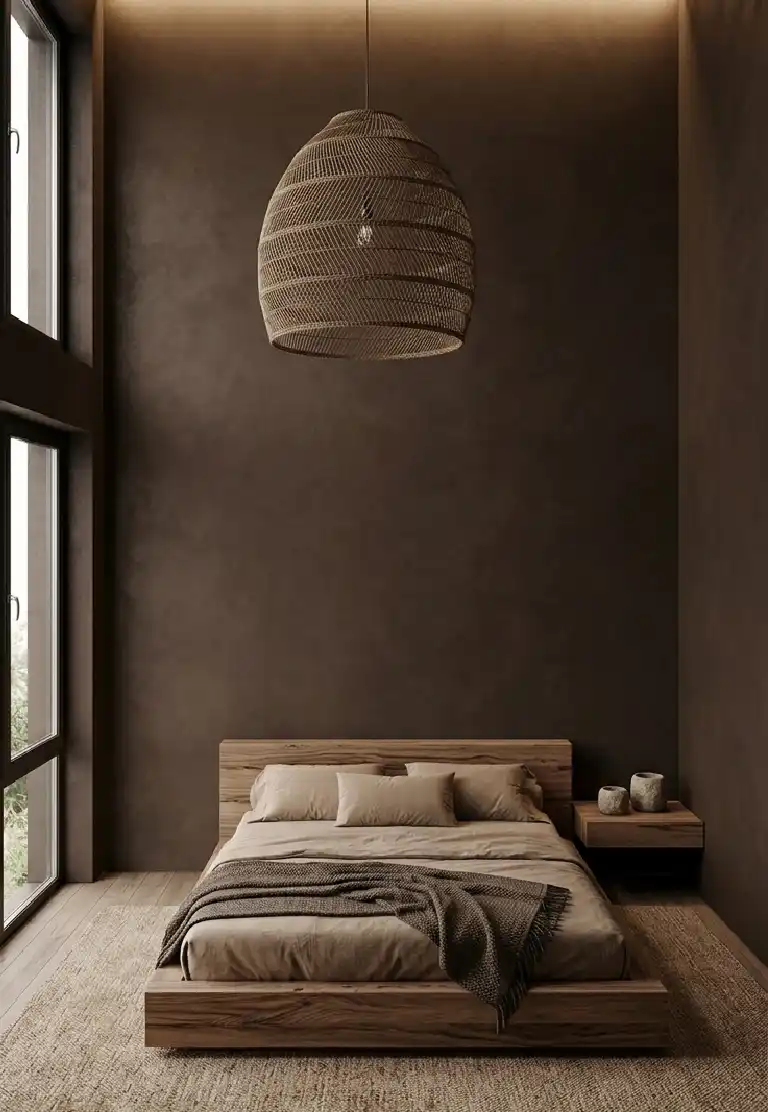 Brown Bedroom Sanctuary with Monochromatic Earth-Toned Limewash Walls