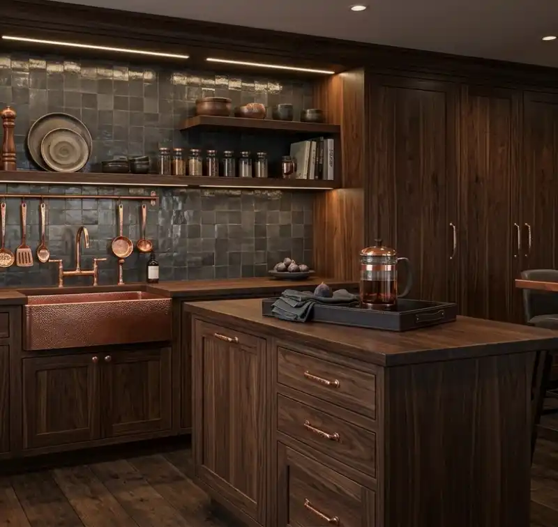 Copper Accents & Dark Walnut Luxury