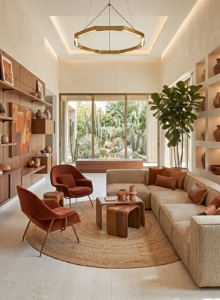 Family Room Idea: Mid-Century Modern Evolution with Organic Curves and Walnut Joinery