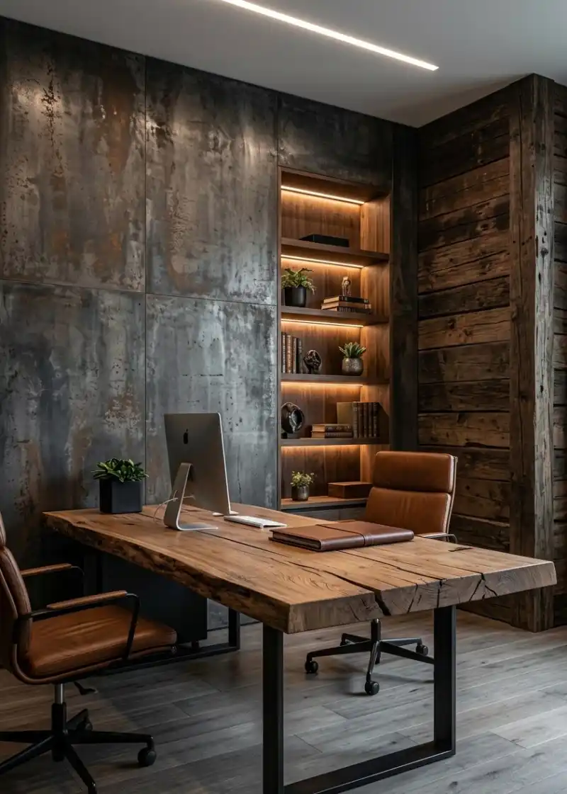 industrial office : A Fusion of Raw Timber and Cold Concrete