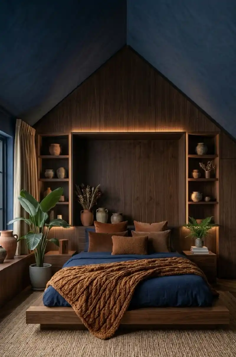 Cozy Navy Blue and Brown Bedroom Designs 2026