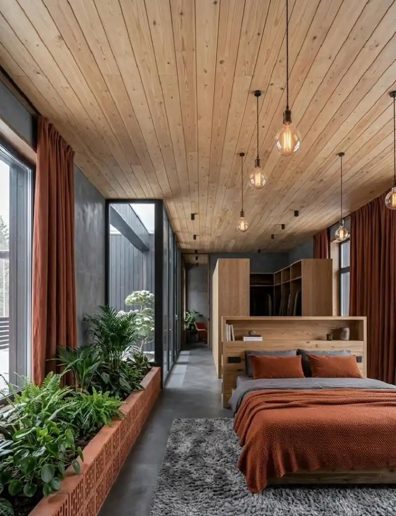 Terracotta & Wood Bedroom with Integrated Interior Garden