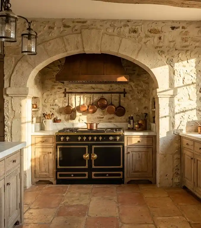 The Sun-Drenched Stone Hearth kitchen
