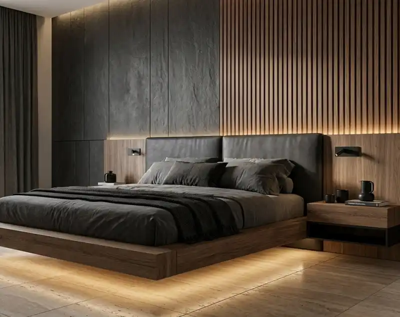 This design focuses on a floating platform bed crafted from ...