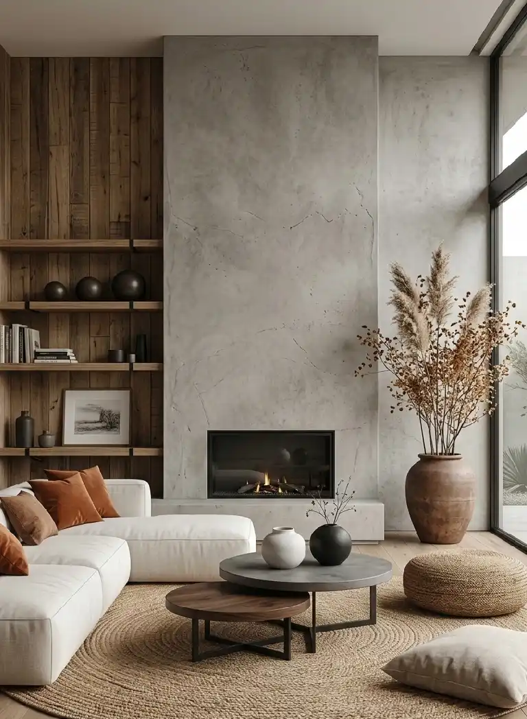 A Family Room Idea Featuring Micro-Cement and Burnt Sienna Accents
