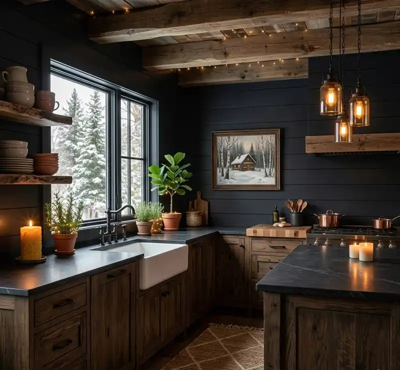 This kitchen masterfully balances moody, dark aesthetics wit...