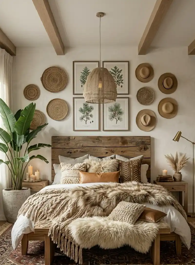 Biophilic Integration within Boho Chic Bedroom Ideas and Woven Textures