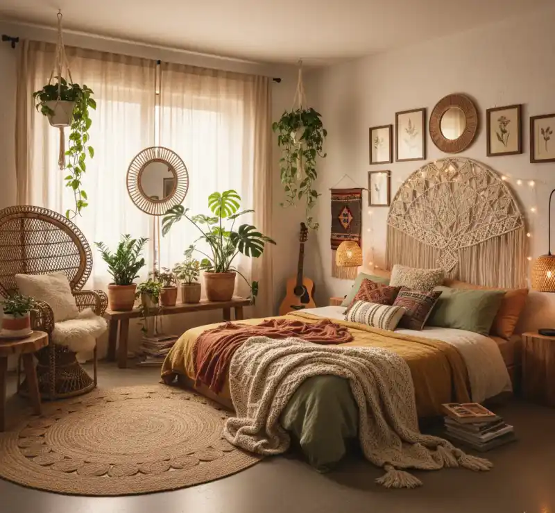 Bohemian Chic Bedroom Design with Natural Elements