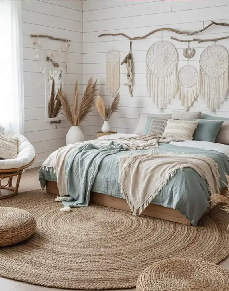Breezy Boho Bedroom with Natural Elements and Soothing Coastal Hues
