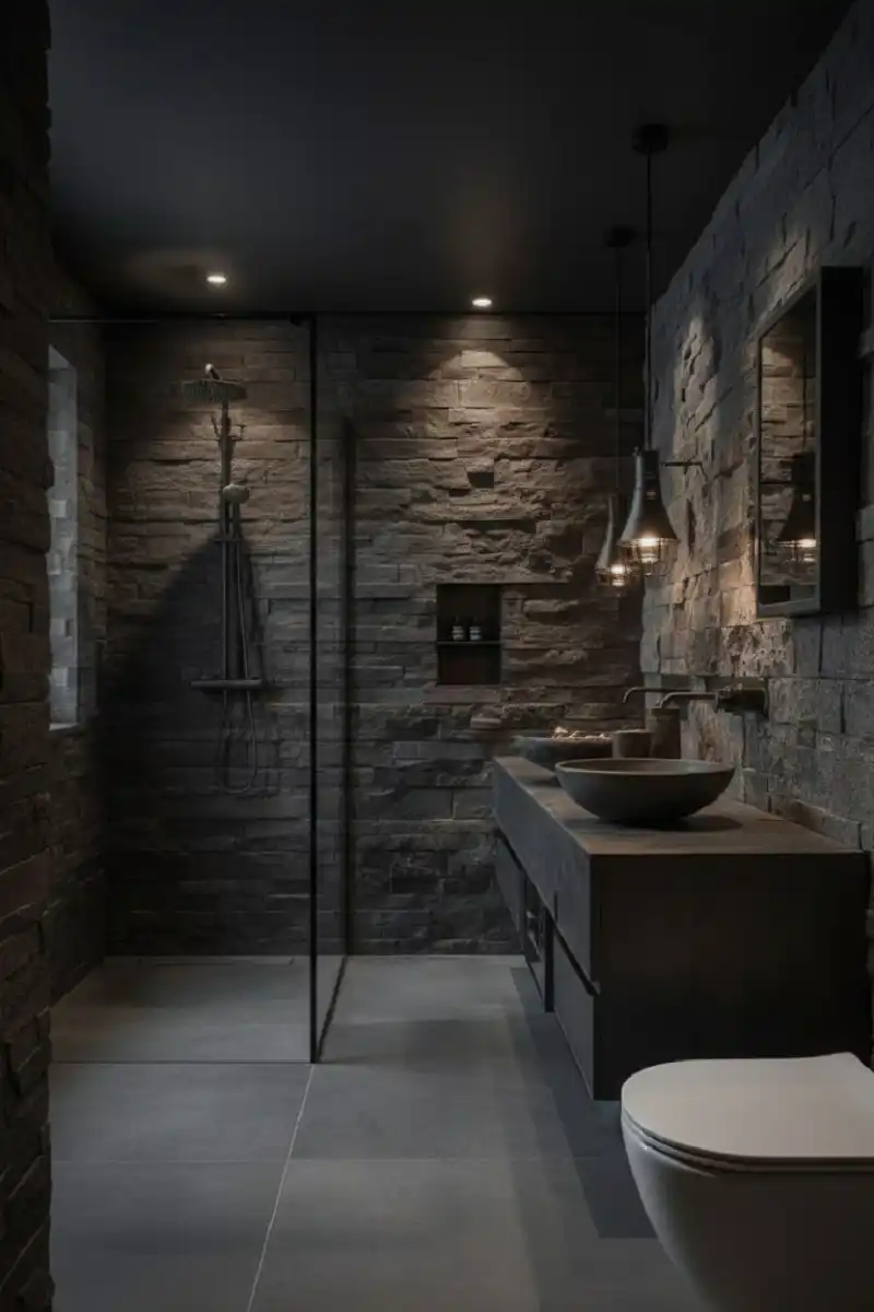 Cavernous Chic: A Modern Industrial Stone Bathroom