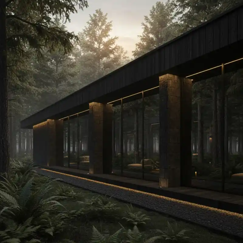 Contemporary Dark Cedar & Basalt Forest Retreat