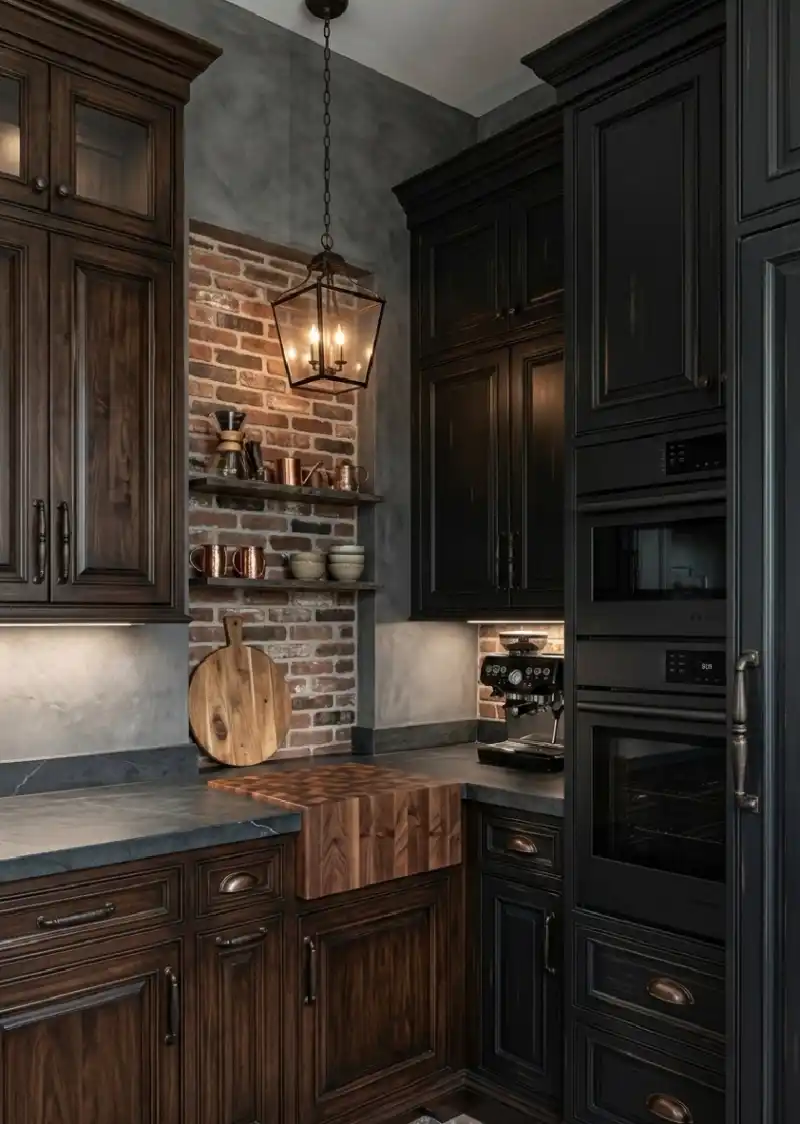 Corner Detail Rustic Kitchen Idea with Integrated Pantry Storage