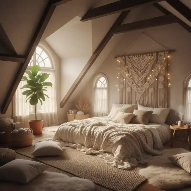 Cozy Bliss The Bohemian Sun-Drenched Attic Bedroom