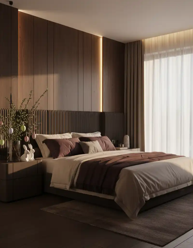 Dark Elegance & Spring Whispers: A Luxurious Master Suite