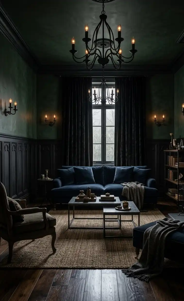 Dark Living Room Idea: Gothic Revival with Ebony Woodwork