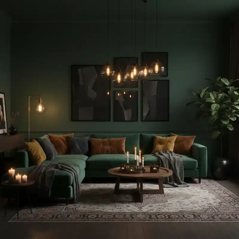 Dark Moody Living Room with Velvet Textures