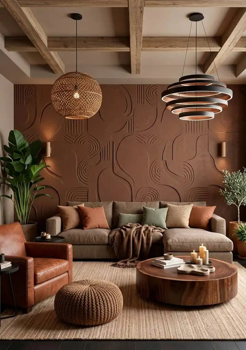 This sophisticated living room design seamlessly blends Eart...