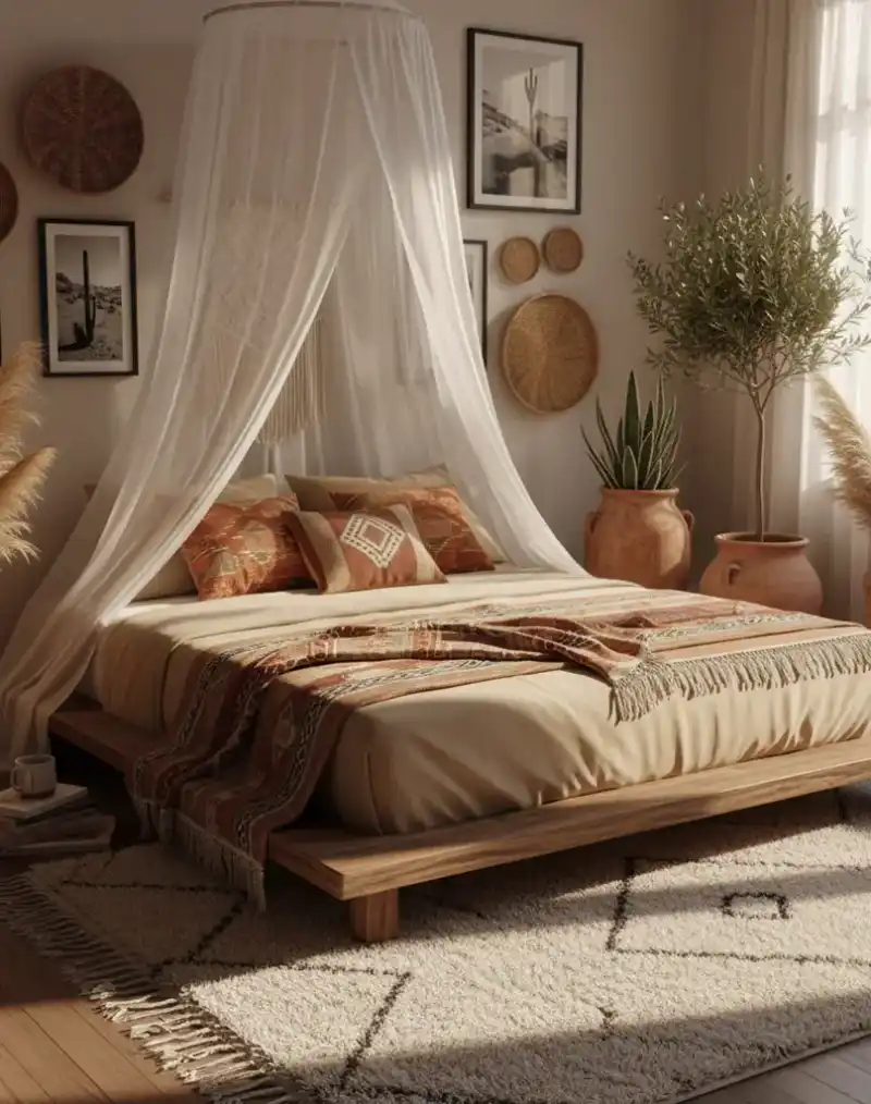 Earthy Boho Bedroom with Sun-Drenched Textures and Global Accents