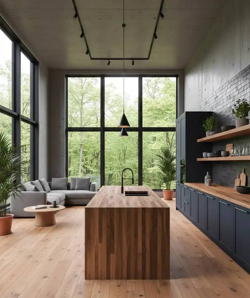 Forest View Loft The Minimalist Wood & Concrete Kitchen