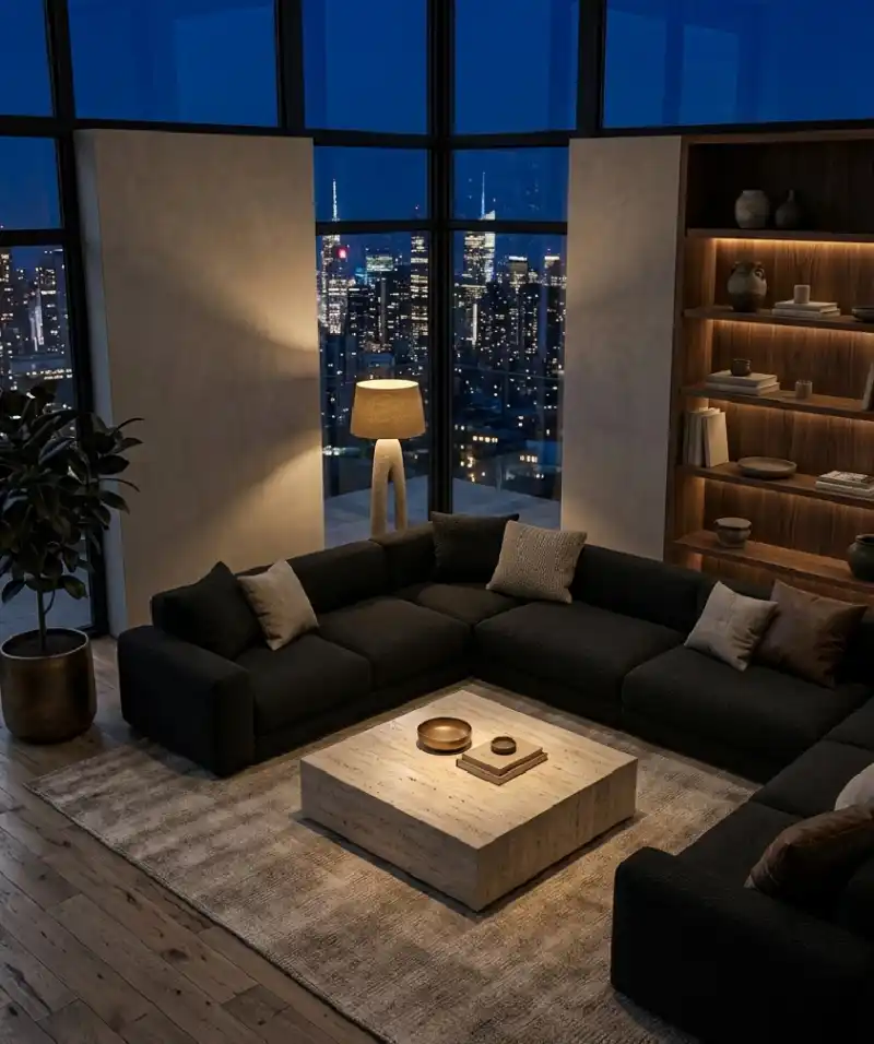 Glass Facades Meet the Rugged Rustic Living Room Idea