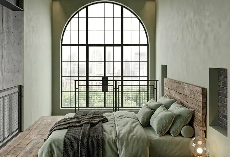 Green bedroom : Loft-Style Mezzanine Bedroom with Exposed Structural Steel
