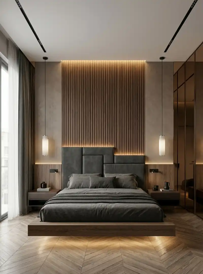 Implementing a Luxury Modern Bedroom Idea with Fluted Timber and Recessed Cove Lighting