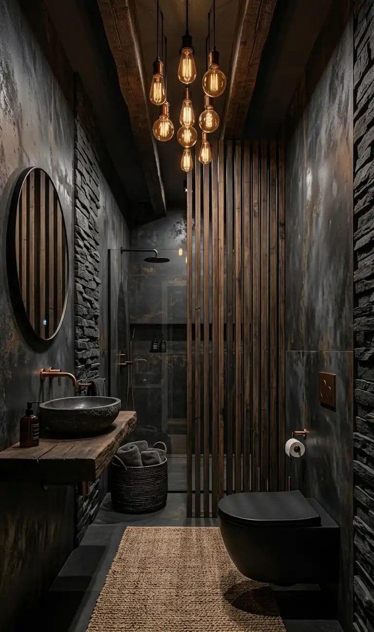 Industrial Brutalism Meets Refined Luxury Dark Bathroom Idea