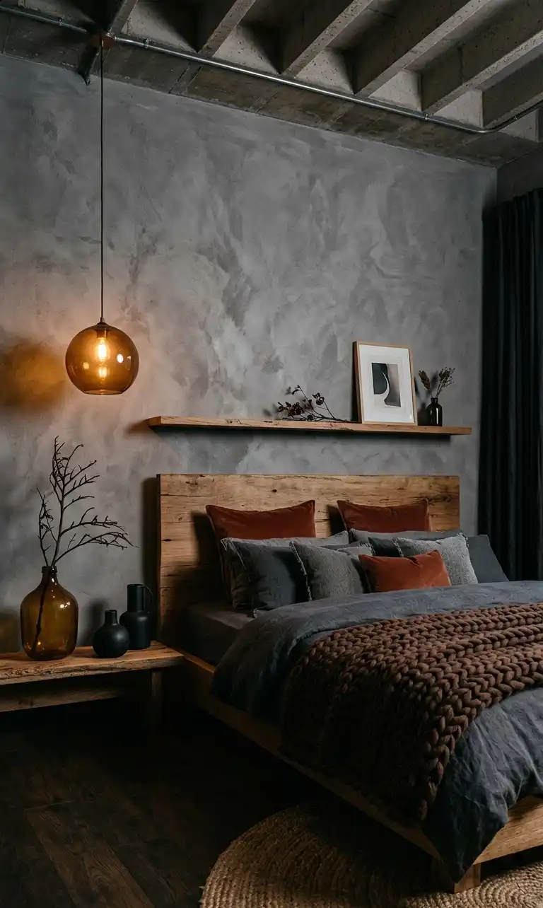 Industrial Brutalist Slate with Earthy Terracotta Grey Bedroom Idea