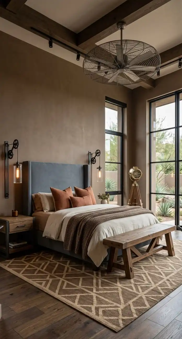 Industrial Chic Meets Boho in this Brown Luxury Bedroom Design with Metal Sconces