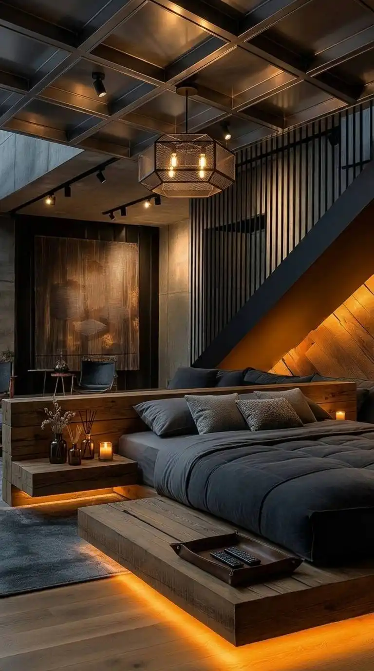 Industrial Noir: The Ultimate Mood-Lit Master Bedroom