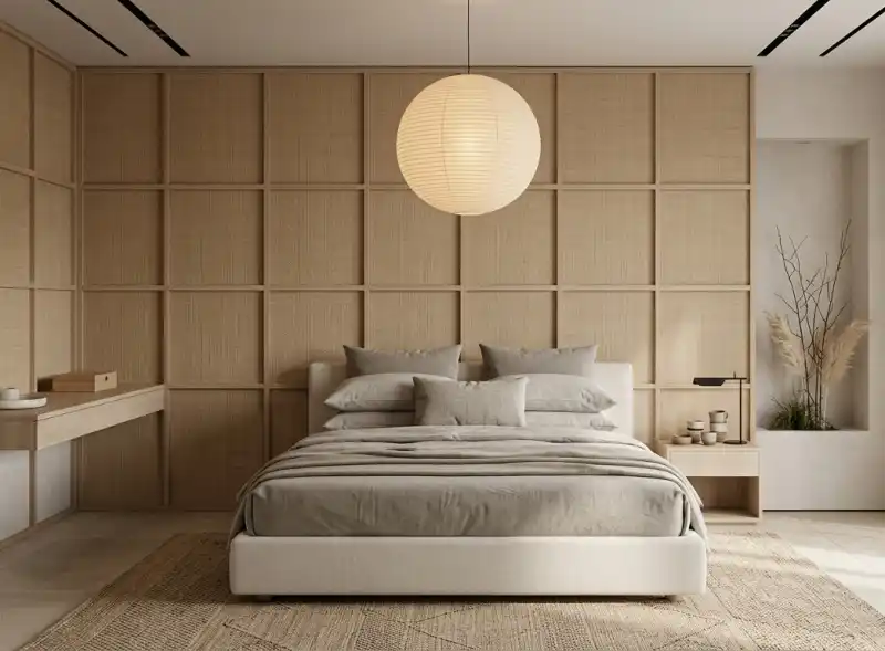 Japandi Elegance & Tactile Contrast : bedroom idea