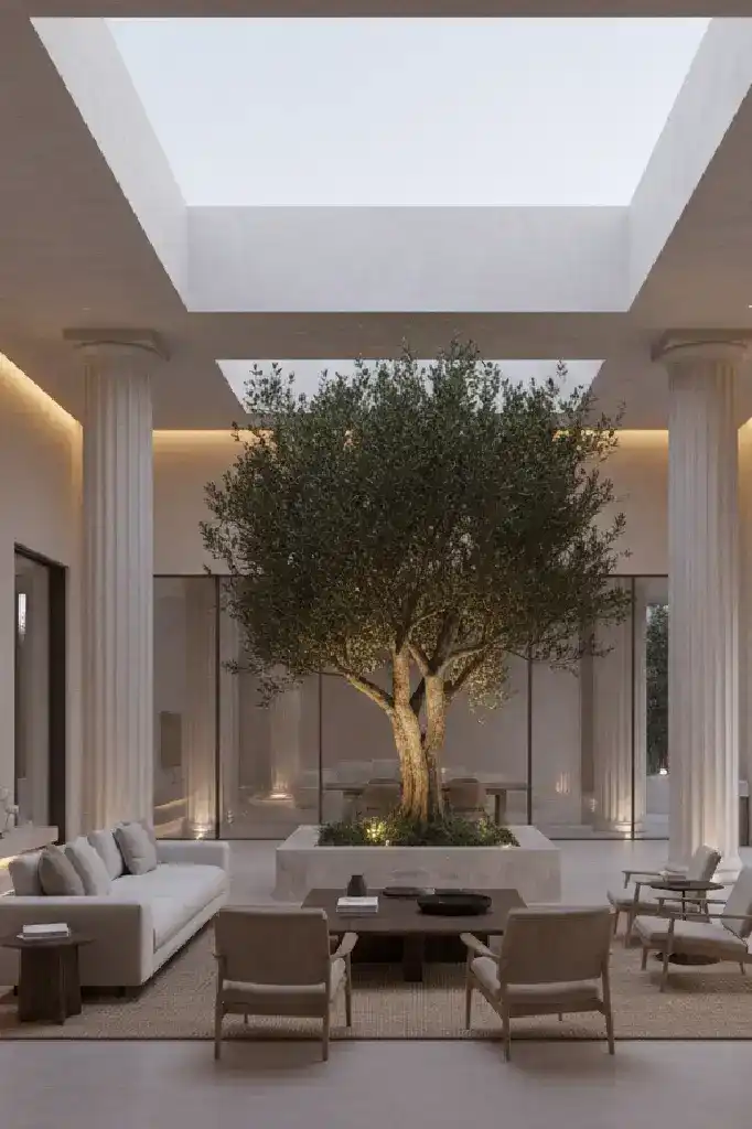 Large Architectural Living Room with Integrated Indoor Nature Garden