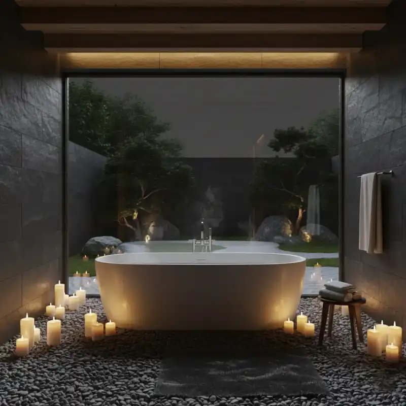Luxury Cozy Bathroom with Free-standing Tub and Candlelight