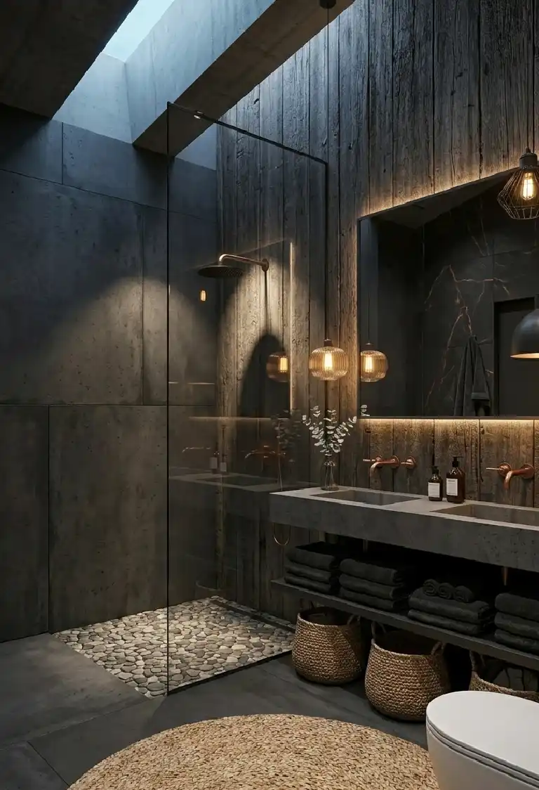 Luxury Dark Bathroom Idea: Subterranean Chic with Sky-Lit Shower Vaults