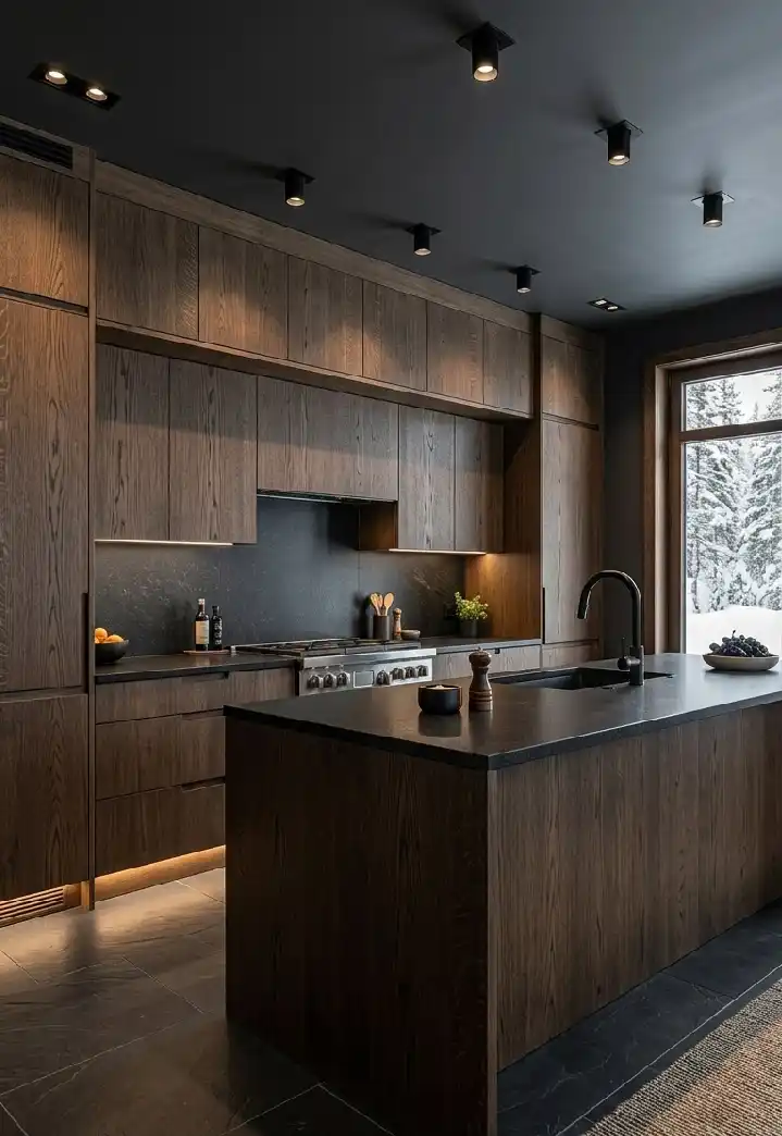 Luxury Modern Kitchen Idea: Alpine-Inspired Dark Oak and Honed Granite Surfaces