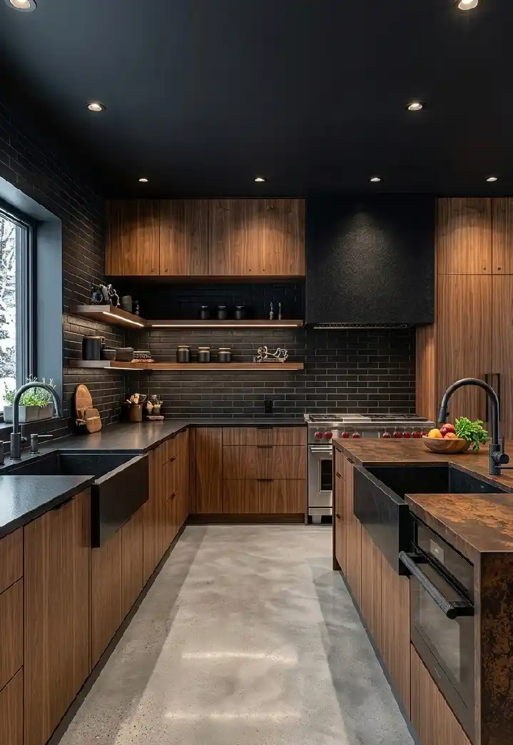 Luxury Modern Kitchen Idea: Dark Walnut Loft Style with Concrete Flooring