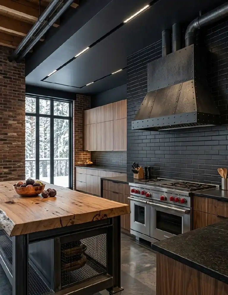 Luxury Modern Kitchen Idea: Industrial Noir with Exposed Brick Accents