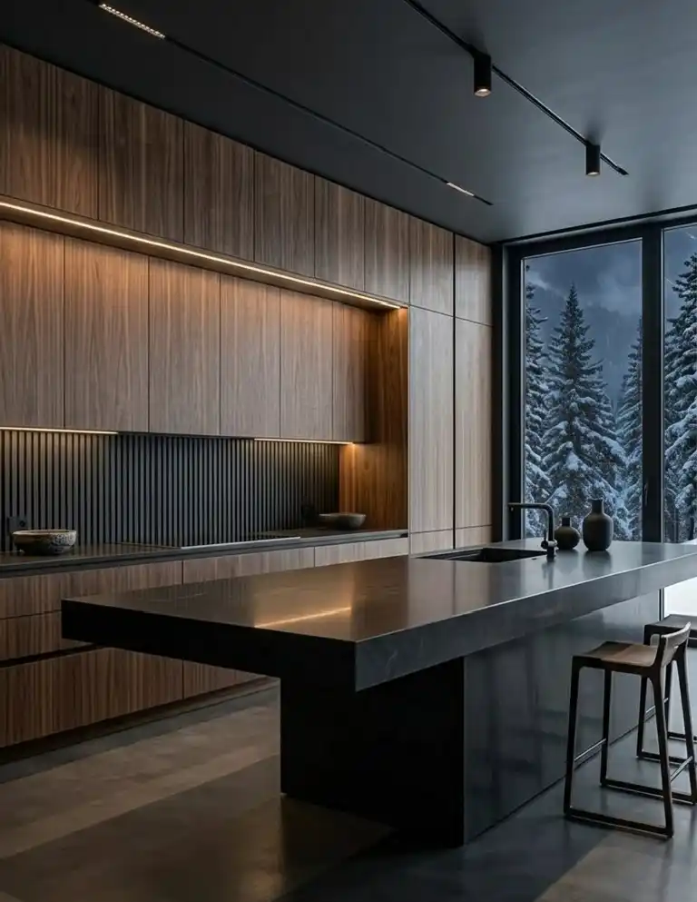 Luxury Modern Kitchen Idea: The Floating Obsidian & Timber Pavilion
