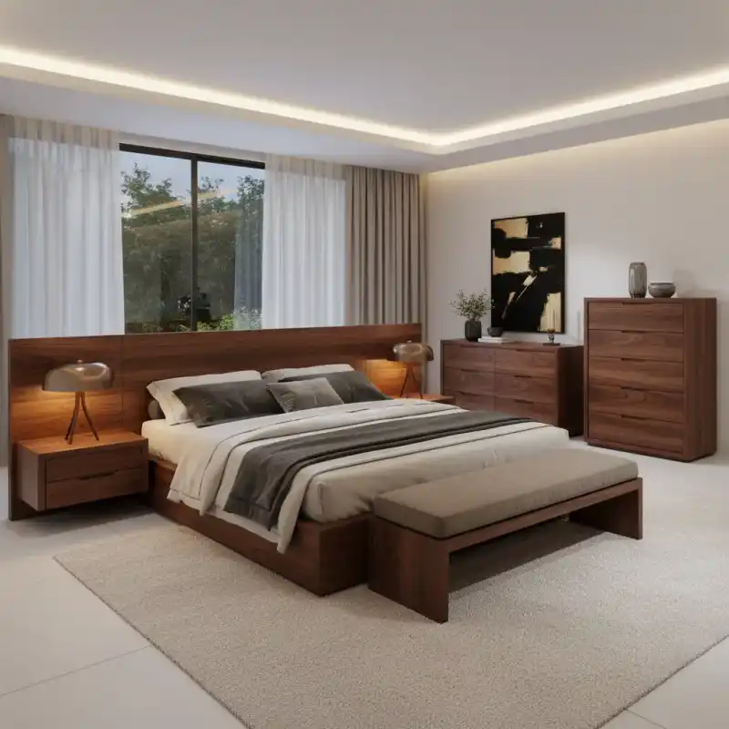 Luxury Walnut Wood Bedroom Furniture Set