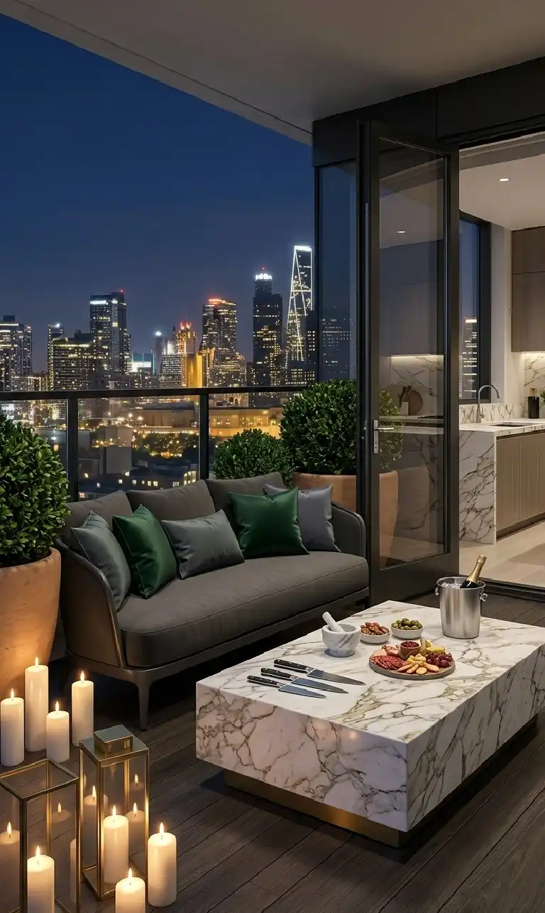 Marble-Centric Luxury Modern Balcony Idea featuring Al Fresco Culinary Elements
