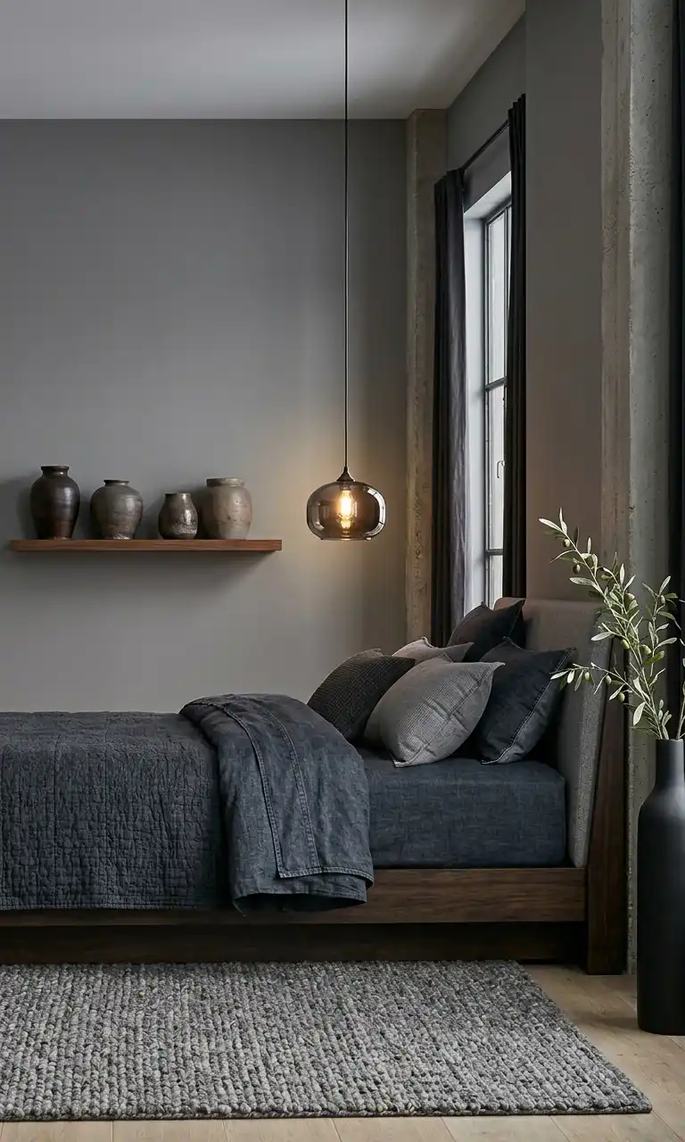 Minimalist Smoke and Natural Stone Grey Bedroom Idea