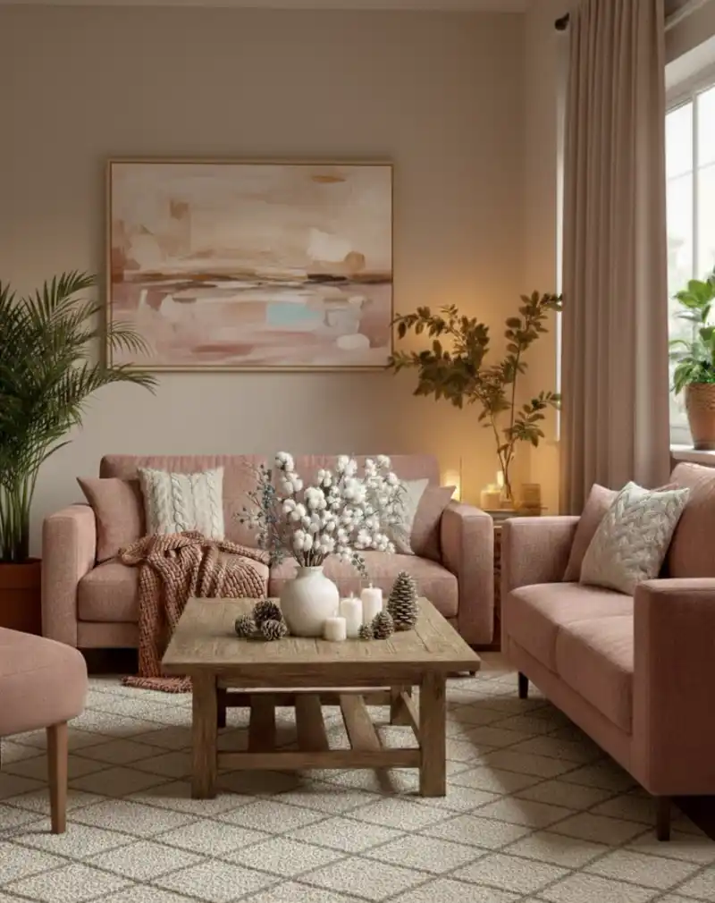 Modern Mauve Living Room with Rustic Spring Accents