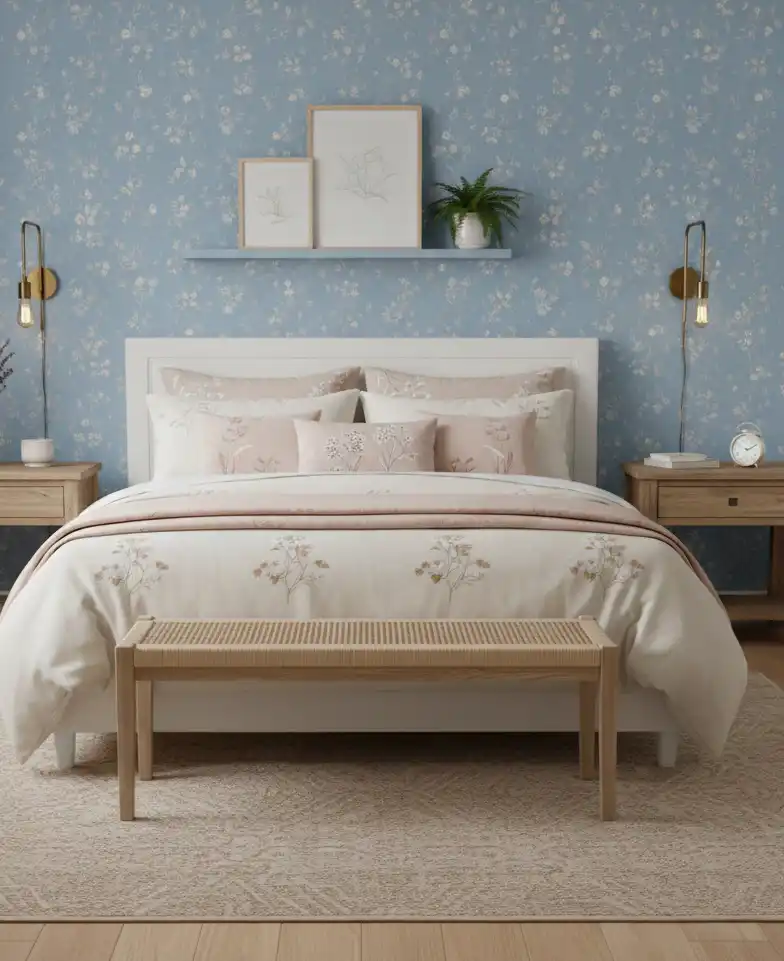 A cozy cottage-style bedroom with a modern twist, featuring ...