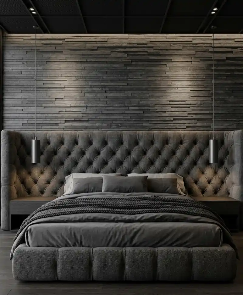 Monochromatic Slate and Iron Industrial Bedroom Style