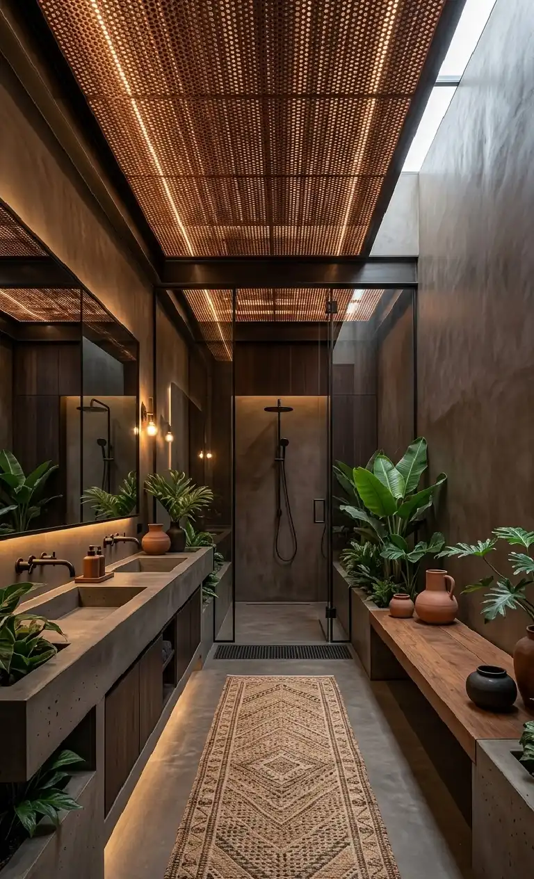 Monolithic Concrete and Earth-Tone Luxury Dark Bathroom Idea