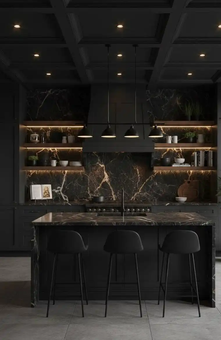 Obsidian Elegance: The Neo-Noir Transitional Kitchen