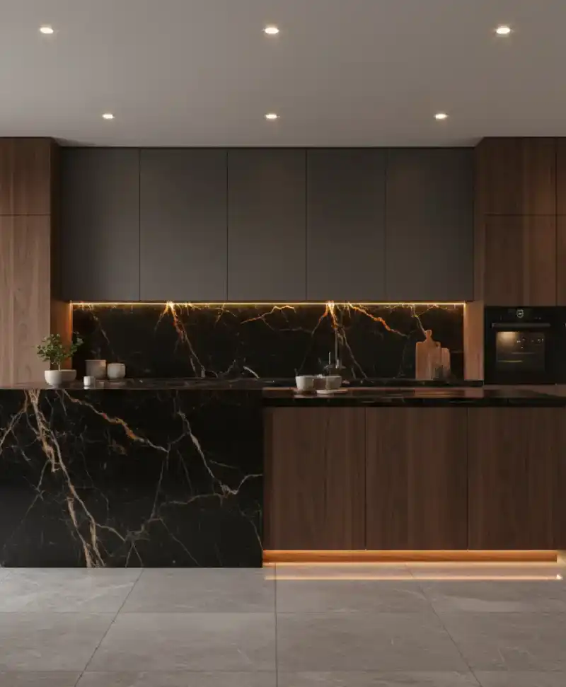 Obsidian Marble & Rich Walnut The Ultimate Mood-Setter Kitchen