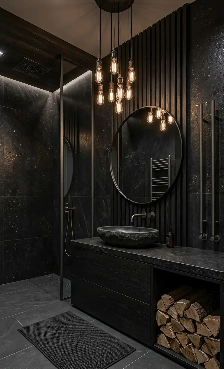 Obsidian Tones and Oxidized Metal: Luxury Dark Bathroom Idea Concept