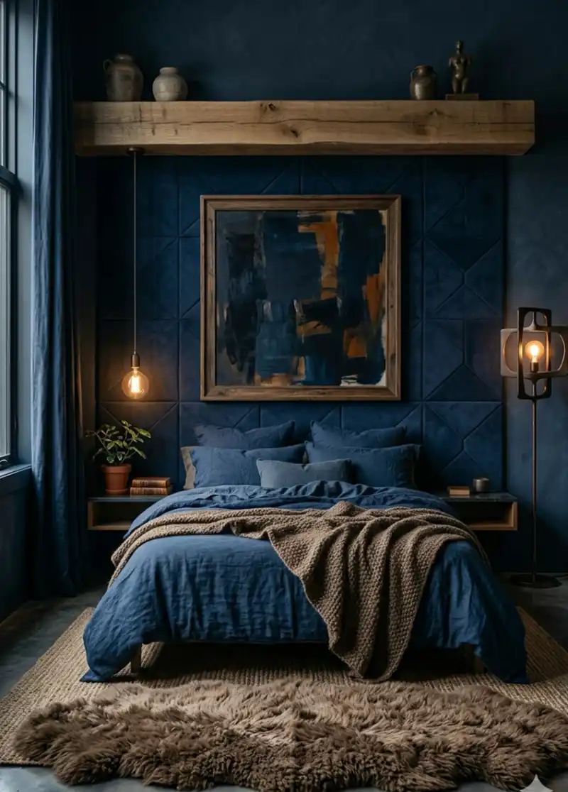 Cozy Navy Blue and Brown Bedroom Designs 2026