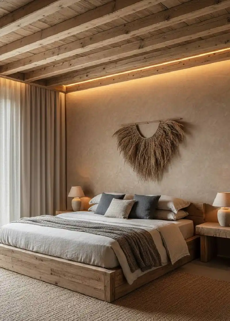 Organic Serenity: A Warm Japandi-Inspired Sanctuary bedroom